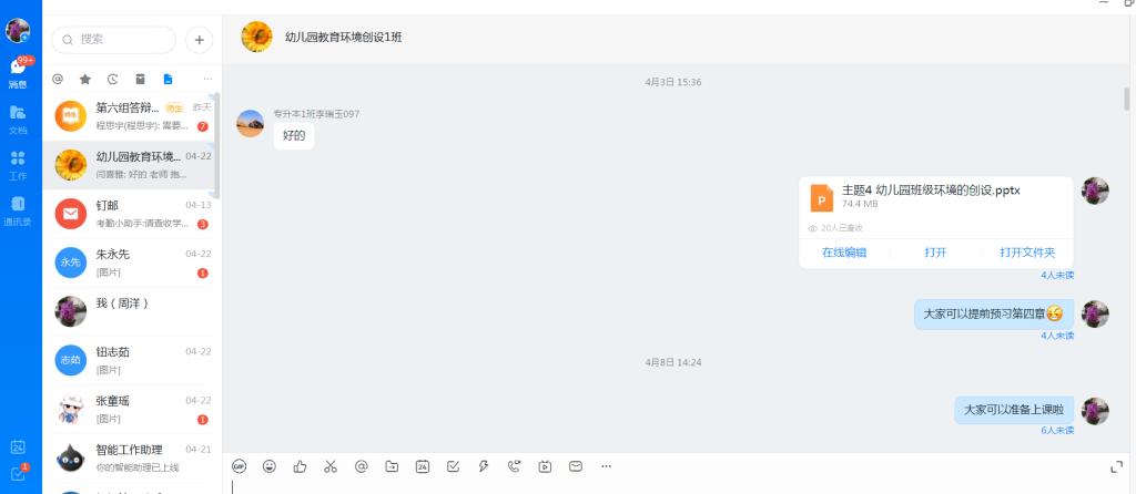 4.讲完课后,及时将本章精心制作的ppt和相关资料传到钉钉群里。方便学生复习。