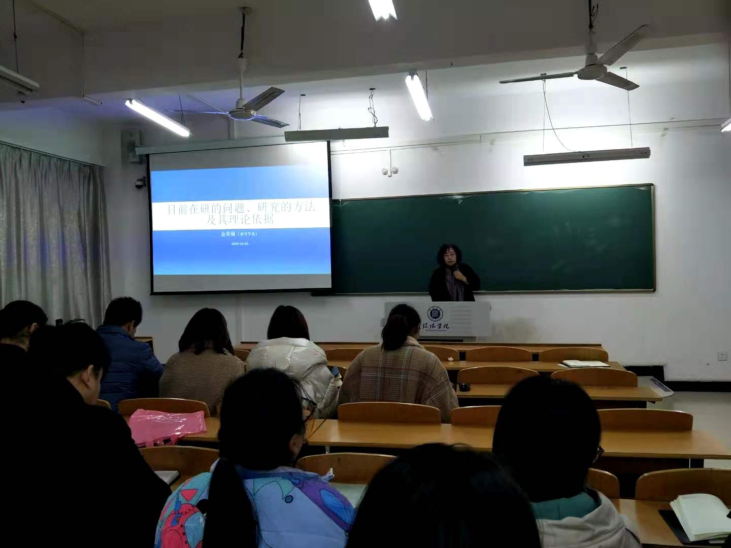 12月1日下午,教育学院金美福教授为青年教师作了题为《目前在研的问题、研究的方法及其理论依据》的学术报告。教育学院青年教师聆听了报告。