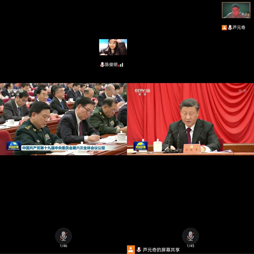 11月21日晚上,教育学院第十一期入党积极分子围绕党的十九届六中全会精神开展专题学习。学员们观看了十九届六中全会系列视频,集体学习了《中国共产党第十九届中央委员会第六次全体会议公报》等相关内容,参会学员结合在线学习收获以及在校工作和学习实际,交流了学习感悟。