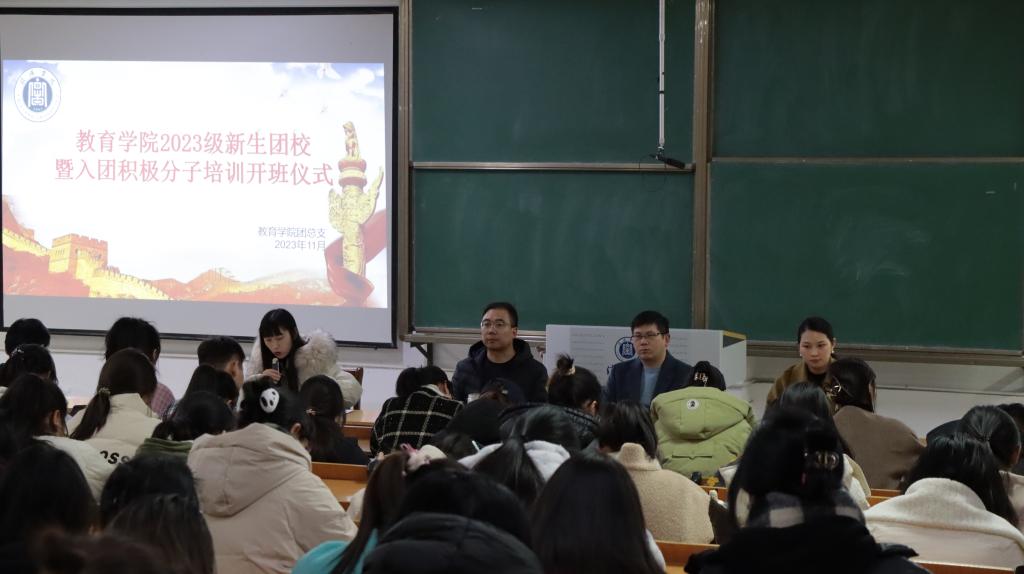 为加强共青团队伍的建设,引领广大青年勇于担负起时代的使命,进一步加强对入团积极分子的培养、考察和教育,11月27日下午,我院于社科楼112教室召开了新生团校暨入团积极分子培训开班仪式。出席会议的人员有党总支书记张甲楠、学工干事郝昊、团总支书记林子瑞、2023年下半年入团积极分子以及新生团校代表。