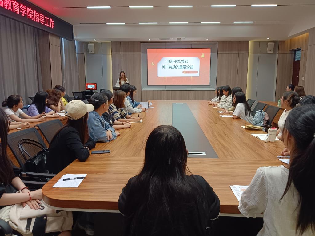 在劳动教育主题团课上,教育学院团员们集中学习了习近平总书记关于劳动的重要论述,这些论述阐释了劳动对于个人成长和社会进步的重要意义,也将激励同学们树立正确的劳动观念,积极投身于劳动实践。