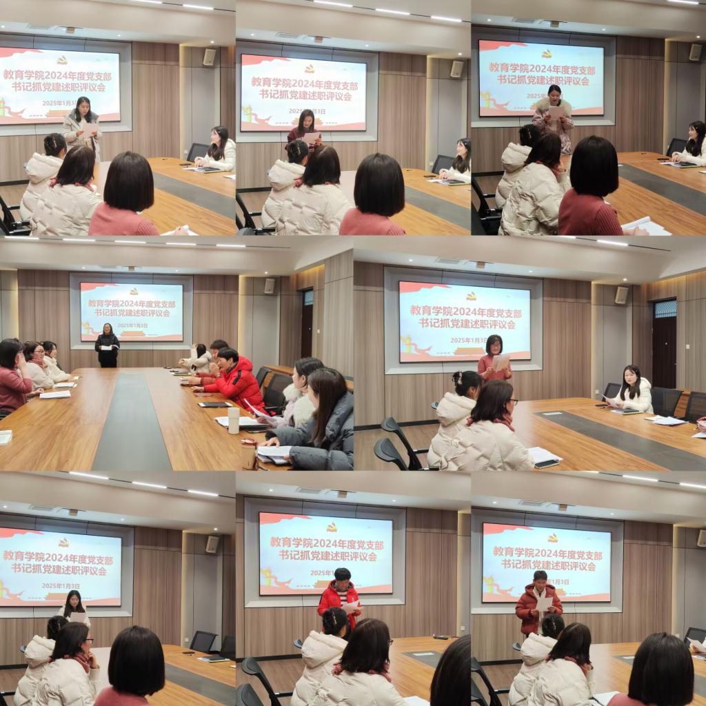 为深入贯彻落实新时代党的建设总要求,促进基层党支部标准化、规范化建设,进一步提升党支部书记履职尽责能力,1月3日下午,教育学院党总支在社科楼109会议室召开了2024年度党支部书记抓党建述职评议会。学院党总支委员和各党支部书记参加了此次会议,会议由党总支书记刘颖方主持。