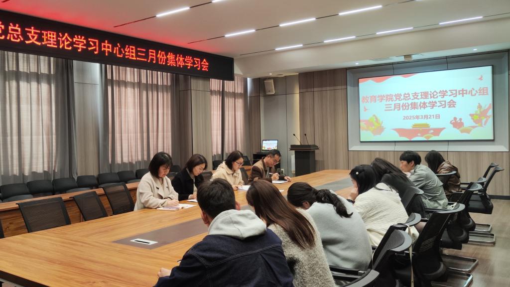 3月21日,教育学院党总支理论学习中心组在社科楼109会议室开展了集体学习,党总支委员、各支部书记参加了学习会。