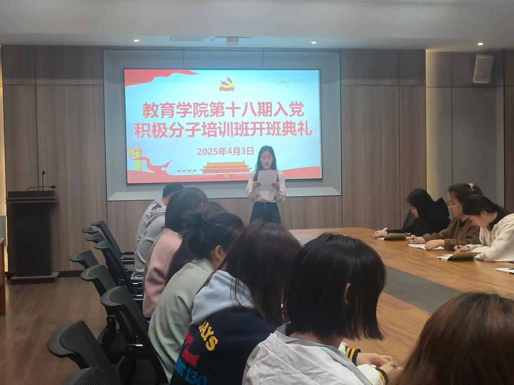 开班仪式在庄严的国际歌声中拉开帷幕。学生党支部书记姜红宣读了《关于举办教育学院第十八期入党积极分子培训班的通知》,付珺宣读了《教育学院第十八期入党积极分子党校培训纪律》,为此次培训明确了要求和规范。
