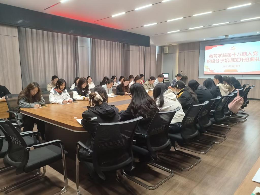 4月3日上午,教育学院2025年上半年入党积极分子培训班在社科楼109会议室正式开班。本次培训班旨在进一步加强对入党积极分子的培养教育,提升入党积极分子的政治素养,确保党员发展质量,为党组织注入“新鲜血液”。学院党总支书记刘颖方,各学生党支部书记,33位入党积极分子学员参加了开班典礼。开班仪式由组织员张文龙主持。