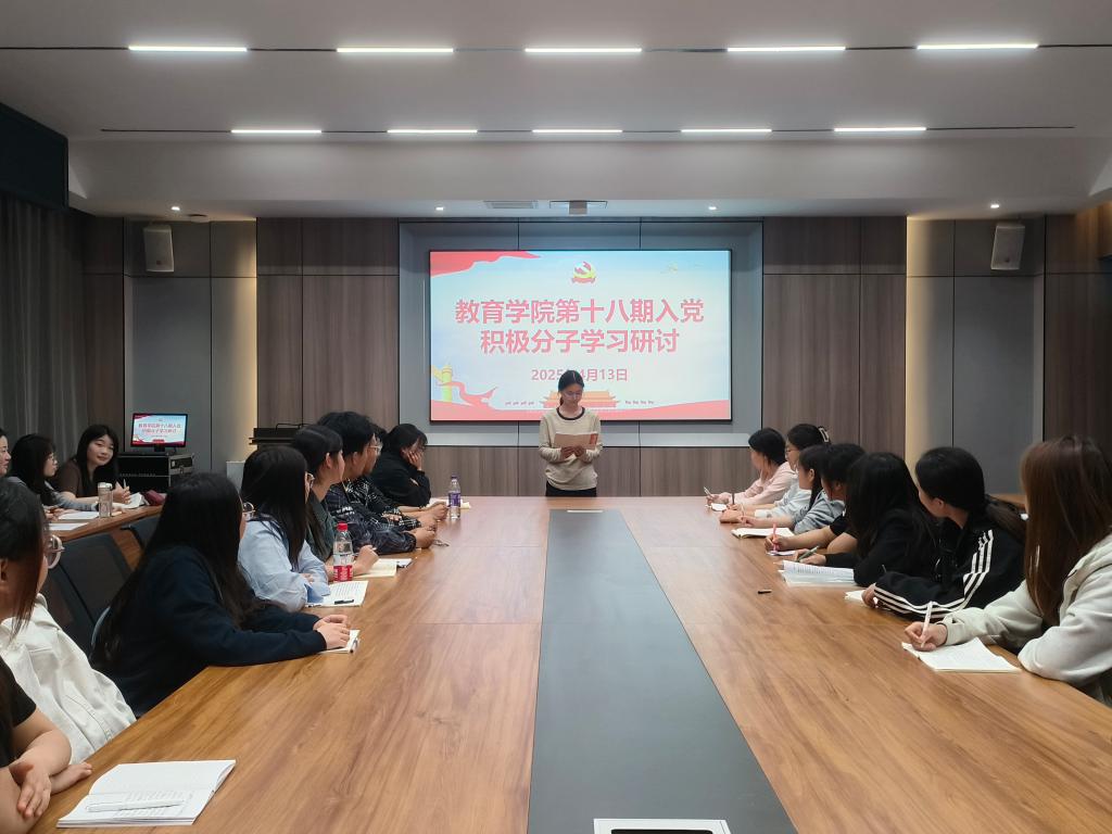 为进一步加强入党积极分子队伍建设,提高入党积极分子的政治素养和理论水平,把好党员发展“入口关”,近期,教育学院举行第十八期入党积极分子集中学习培训。此次培训内容丰富、形式多样,为入党积极分子们带来了一场意义深刻的思想洗礼。