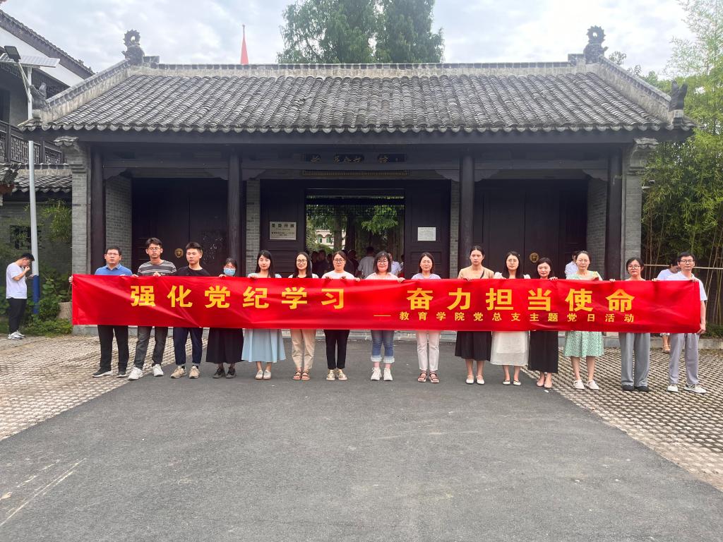 为庆祝中国共产党成立103周年,激励广大党员继承和发扬党的光荣传统和优良作风,提升师生党员纪律意识和党性修养,7月1日上午,教育学院党总支师生党员代表前往信阳柳林革命纪念馆开展“强化党纪学习,奋力担当使命”主题党日活动。