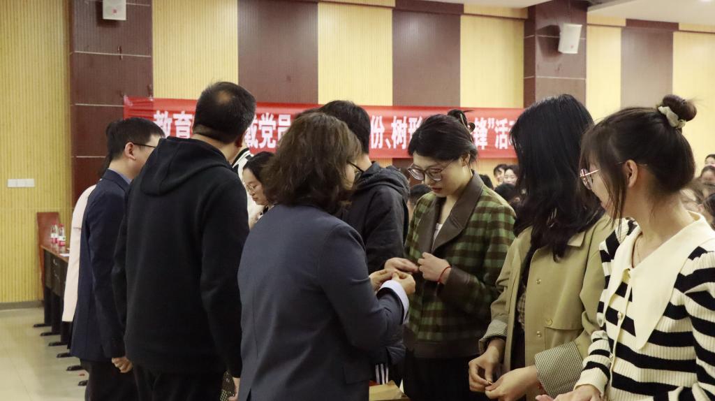 随后,学院党总支班子成员为各支部师生党员佩戴党员党徽。