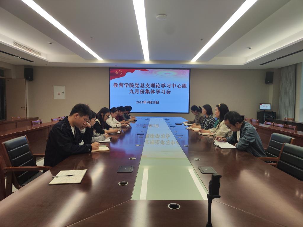 9月28日下午,教育学院党总支理论学习中心组在学院521会议室召开了九月份集体学习会议,党总支委员、各支部书记参加了学习会,党总支书记刘颖方主持会议。