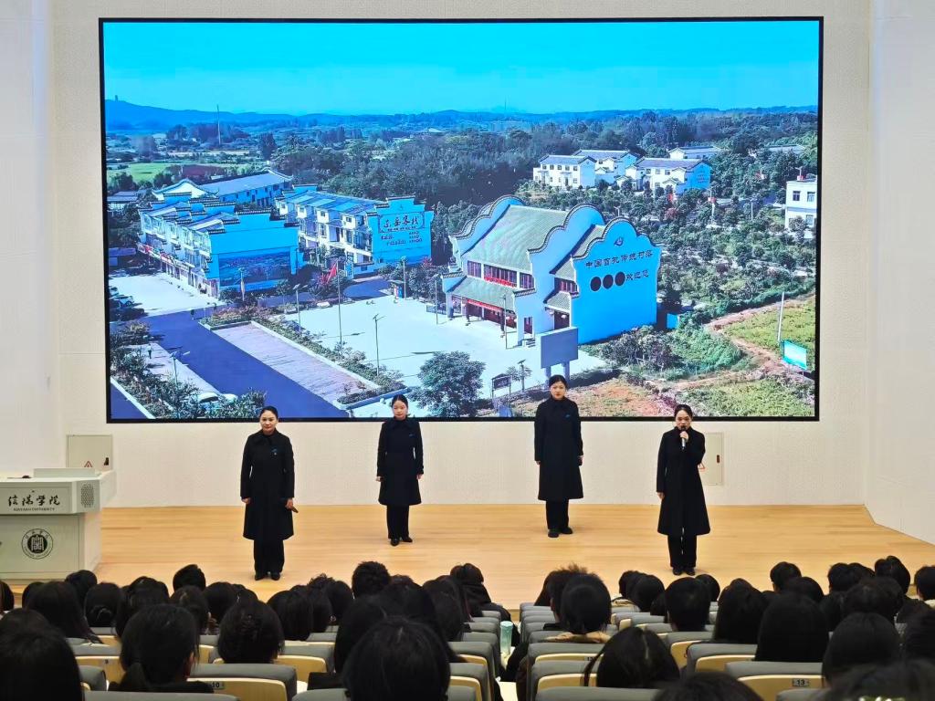 为深入学习贯彻党的二十届四中全会精神,激发广大师生党员的爱国情怀,进一步提高理论学习水平,11月18日,教育学院党总支在教三楼005报告厅组织开展了“牢记嘱托,砥砺奋进”主题党课。本次党课由光山县红色文化宣传教育中心的老师们主讲,全体师生党员、部分入党积极分子和入团积极分子参加了学习。党总支书记刘颖方主持了此次党课。