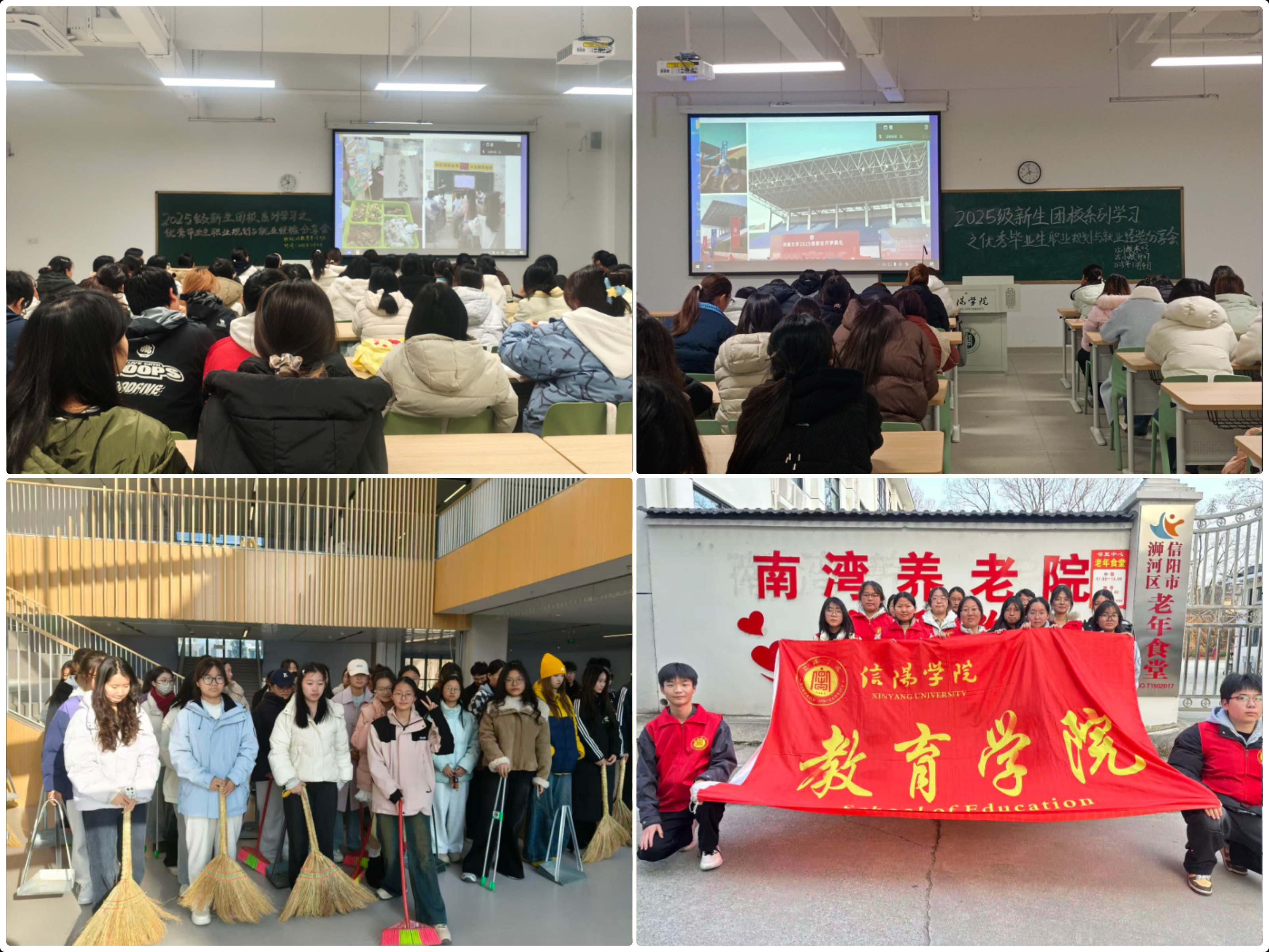 实践是检验真理的唯一标准,也是青年成长的必由之路。12月4日面向全体团员开展的职业规划与就业经验分享会教育搭建起经验传承的桥梁,2025届优秀毕业生王文会、王靓妍、张瑶瑶分享的学业深耕、实践拓展与职业选择心得,为新生明晰成长路径提供了实用指引;在12月6日文明劳动教育实践中,新生团员们在挥洒汗水的过程中培养吃苦耐劳品质与团结协作精神。实践活动将“知”与“行”紧密结合,让新生团员在服务他人、奉献社会、亲历劳动中深化对理论的理解;在12月9日志愿服务活动中,新生团员走进南湾养老院,以贴心陪伴与真诚关怀践行敬老爱老传统美德,在奉献中体会责任担当。