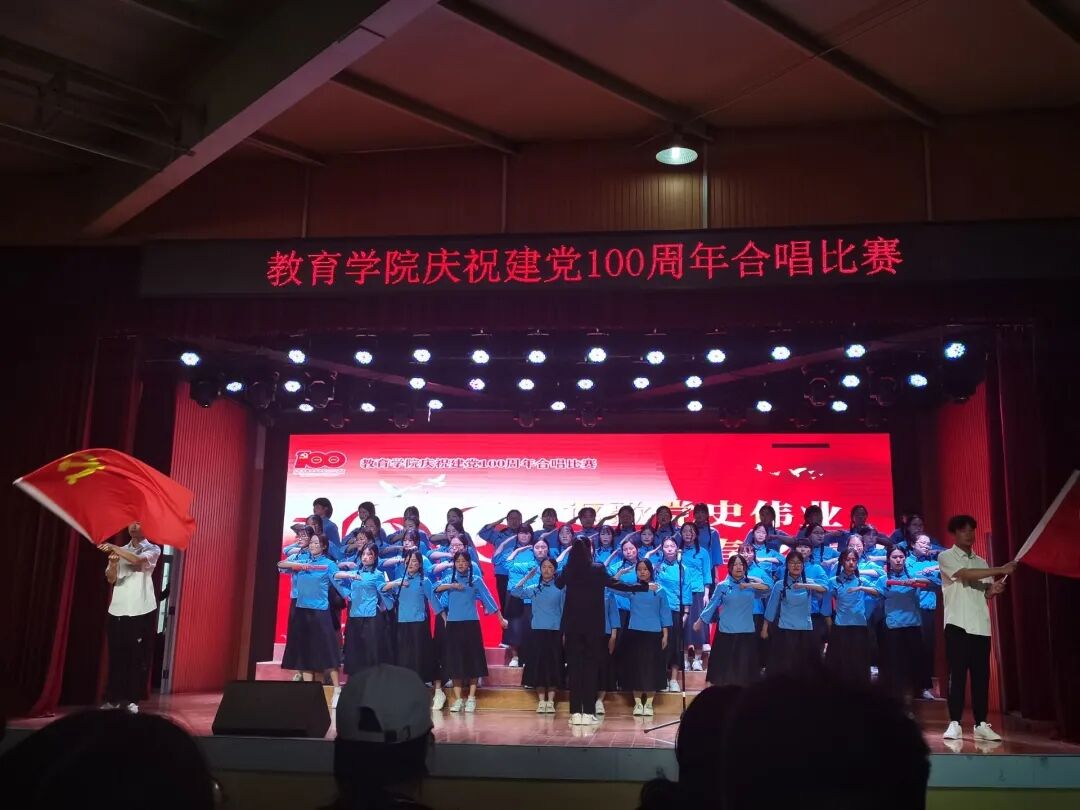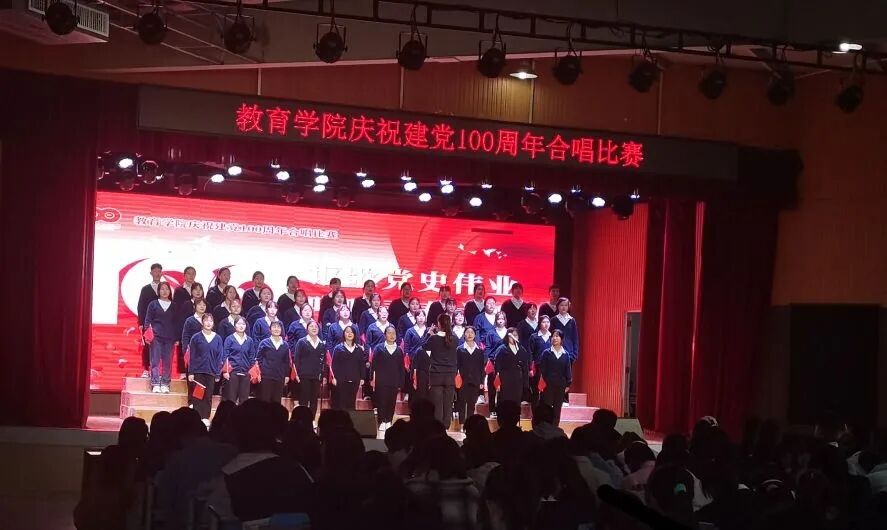 为庆祝建党100周年,教育学院于4月25日在大学生活动中心举办了“讴歌党史伟业,唱响青春之歌”为主题的合唱比赛。莅临合唱比赛的领导有校团委书记郑山峰、党委宣传部杨正玉、党委办公室杨浩然、教育学院党总支书记张甲楠、教育学院学工干事郝昊、教育学院团总支书记周余瑞、教育学院学前艺术教研室主任王思以及教育学院学前艺术教研室教师翟海燕。