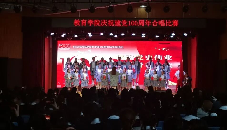 本次建党100周年合唱比赛经历了初赛和决赛。2021年4月11日中午,在院党委的精心组织下,教育学院在东区田径场举办了合唱比赛初赛,参加比赛的学生为教育学院2019级和2020级全体学生,共27个团支部。经过初赛选拔,共14个团支部进入决赛。比赛中,同学们身着统一服装,个个精神可嘉,用独具匠心的唱法,大气磅礴的歌声和旋律歌颂了中华民族自强不息的伟大精神和阔步向前的豪迈气概。