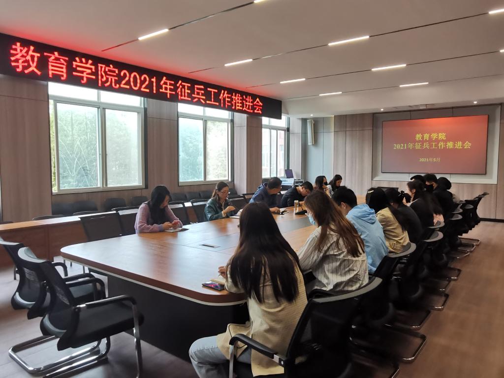 5月17日下午,教育学院2021年征兵工作推进会在社科楼109会议室召开。教育党总支书记张甲楠、学工干事郝昊及学院全体辅导员老师参加会议。会议由郝昊主持。