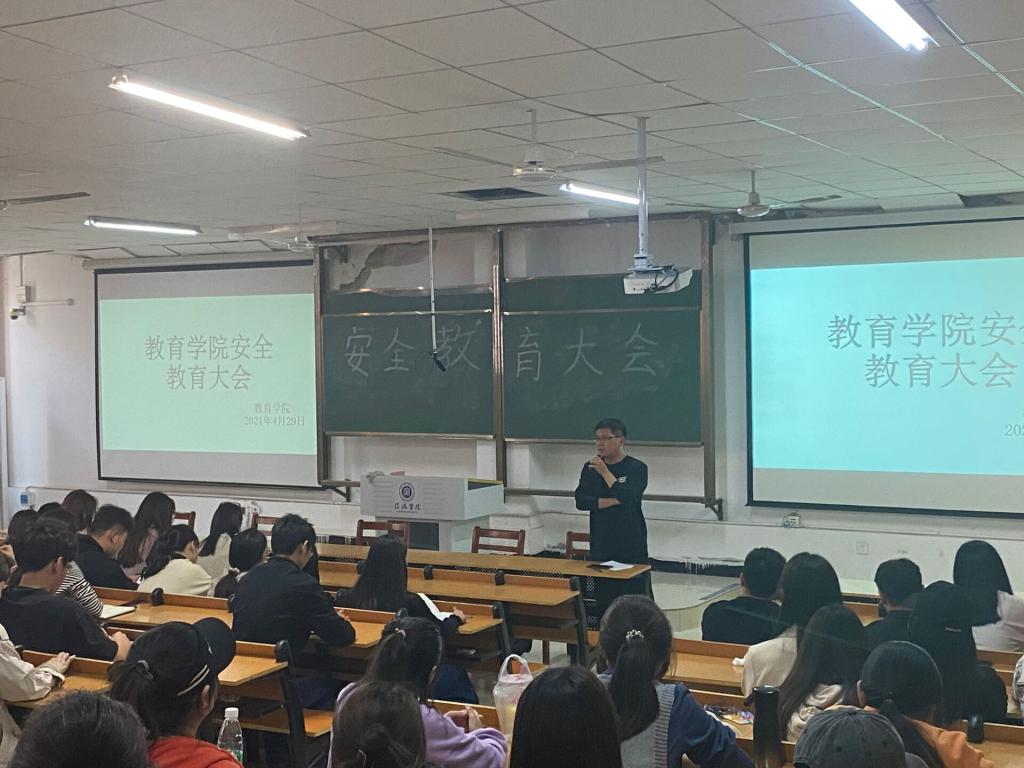 2021年4月29日,教育学院在社科楼112召开安全教育大会。参加此次会议的有教育学院党总支书记张甲楠、学工干事郝昊、全体辅导员及各班班长、心理委员和生活委员。
