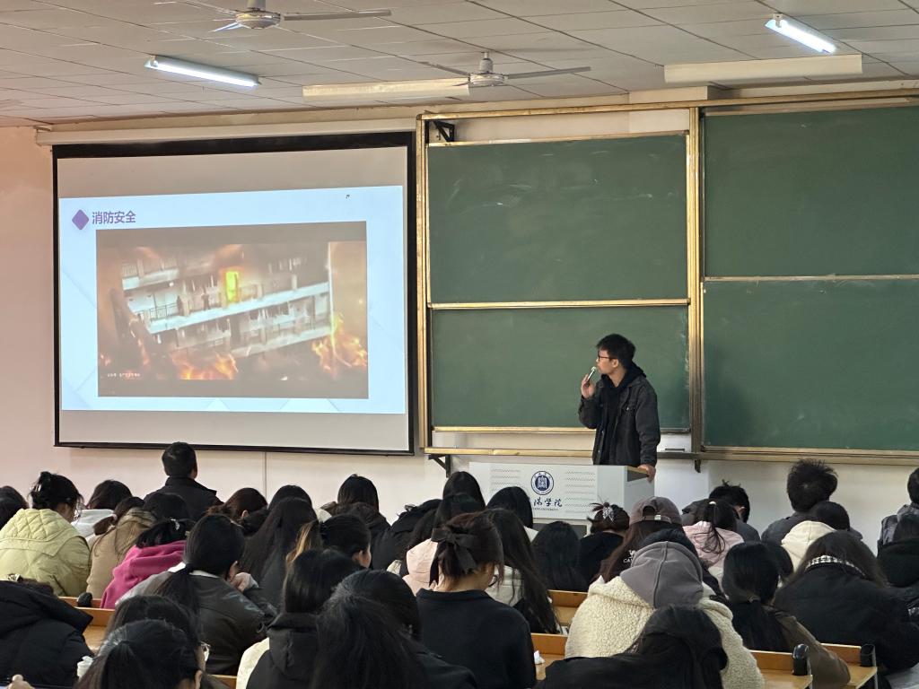 针对宿舍安全问题,樊雪冰进行了系统的安全知识培训。他围绕消防安全、用电规范、防范电信诈骗等内容,结合典型案例进行讲解,进一步提升了同学们的安全防范意识。同时,他提醒楼层长、寝室长要关注宿舍成员的心理状态,及时发现和反馈异常情况,共同守护宿舍安全。