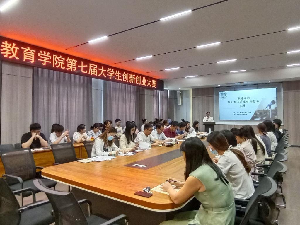 为全面落实习近平总书记给中国“互联网+”大学生创新创业大赛“青年红色筑梦之旅”大学生回信重要精神,深入推进大众创业万众创新,推动高等教育高质量发展,加快培养创新创业人才,教育学院积极响应学校号召,在学校招生就业处的指导下,开展第七届大学生创新创业初赛。大赛于5月27日下午在社科楼109会议室进行,校团委书记郑山峰,招生就业处老师秦金峰,教育学院党总支书记张甲楠,学工干事郝昊,团总支书记周余瑞及全体辅导员担任此次比赛评委,学生会成员和2019级、2020级学生代表参加此次比赛。