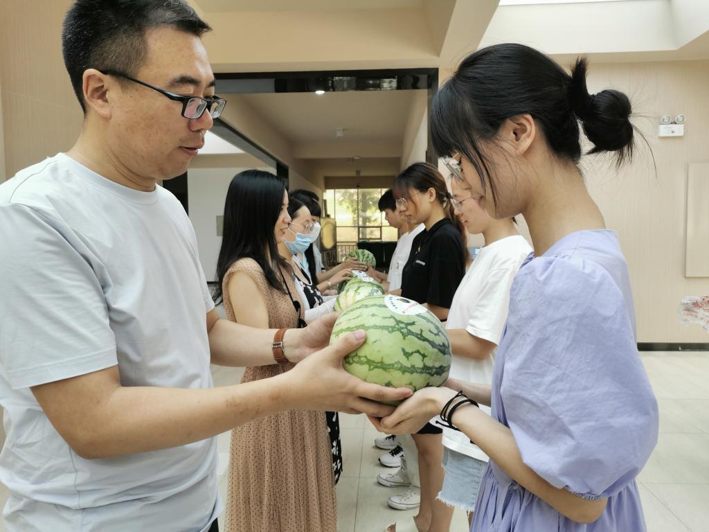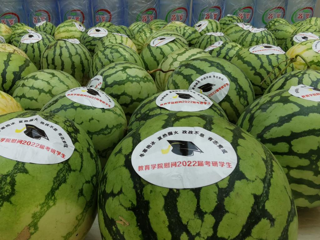 张甲楠对同学们勤奋复习的状态给予了肯定,提醒学生们要注重劳逸结合,合理安排好复习时间,锻炼好身体,高效复习,科学备考。另外,要求大家要遵守学校规章制度,严格请销假管理,坚持每日安全打卡。他强调学院是所有考研同学的坚强后盾,将一直为同学们做好后勤保障工作。随后,领导老师们为学生分发了西瓜等慰问品。