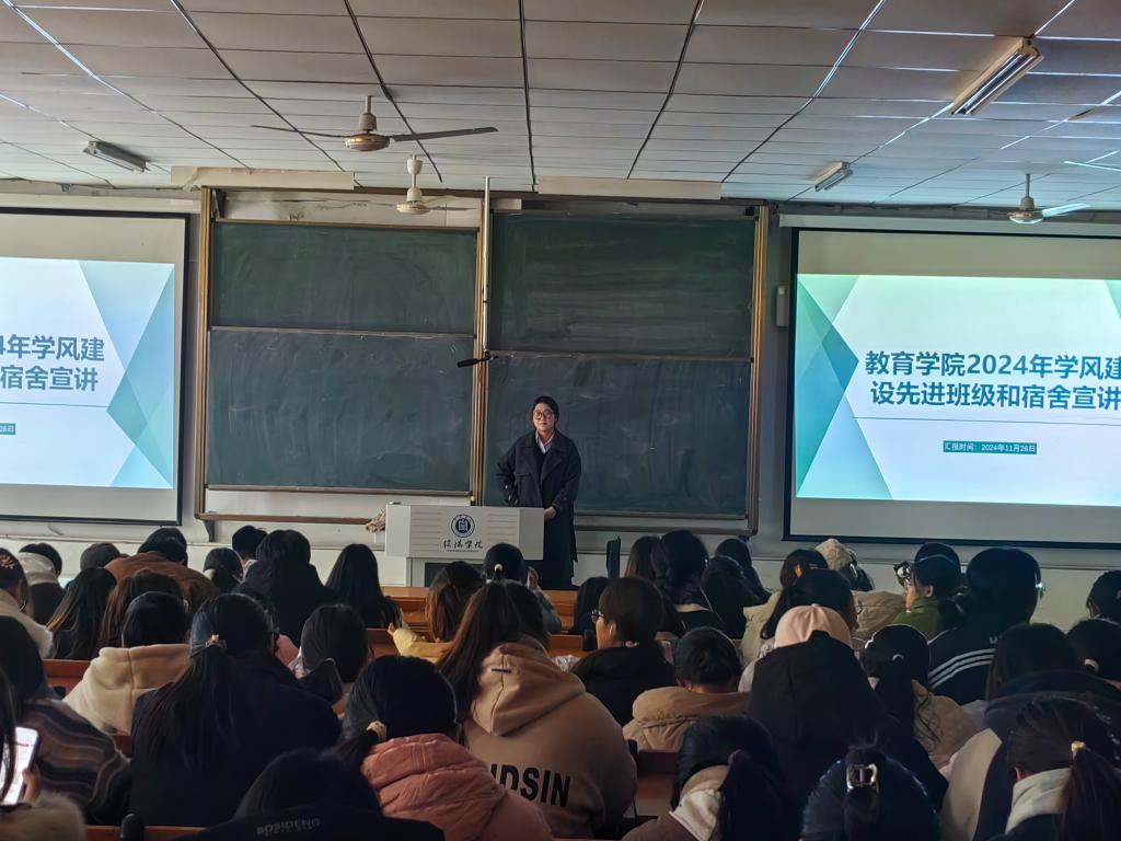 为进一步加强我院学风建设,提升教育教学质量,营造积极向上的学习氛围,增强学生的集体荣誉感和自律意识,11月26日,教育学院在社科楼112教室举办了学风建设先进集体宣讲活动,各班级代表共200人参加了此次活动。