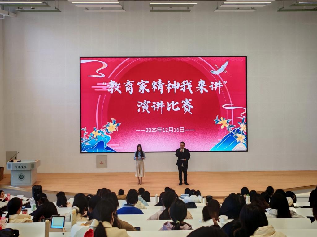 “教育家精神我来讲”演讲比赛在教三楼104报告厅开赛。作为教育学院学风建设的特色活动,本次比赛以传承教育初心、锤炼专业技能为核心,吸引了众多师范生踊跃参与。选手们把“教育家精神”从书本里请到现场,从教育家的生平背景、教育历程、核心思想、时代价值等方面展开阐述,又巧妙融入师范生技能训练场景与自身育人感悟,用真挚的情感、生动的语言诠释了对教育家精神的理解与坚守,以演讲诠释教育情怀,强化专业认知。为学院持续输出“下得去、留得住、教得好”的新时代教师提供了可复制、可放大的精神样本与育人范式。