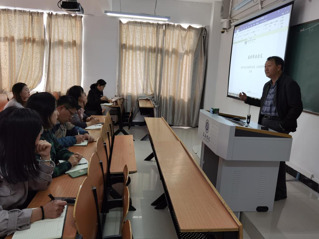 会上,王可教授针对心理学专业学生毕业论文的学科特性和论文结构的独特特点进行了讲解。讲解内容包括选题形式以及副标题如何使用,摘要的基本内容,研究工具包含的要素,研究对象的调查范围,数据表格呈现的形式,部分应该涉及到的内容等进行了全面的讲解。刘教授针对论文题目和论文内容要对应,研究方法要准确等内容进行了补充。