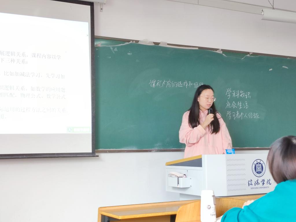 活动开始前,闫楷汶老师强调此次活动的目的与重要性,希望大家能抓住此次机会交流学习。新进教师一一上台试讲,她们风格各异,各有风采。冯安然讲课思路清晰,结合案例进行了深入探讨;余梦梦教态自然大方,内容充实,师生互动有序;宋松教学语言流畅,嗓音洪亮;王尧尧用“故事”讲解知识,教学语言生动;王林课件图文并茂,教态自然。最后,杨洪德副教授进行总结发言。他肯定了新进教师的优点,并给出了进一步提升的建议。