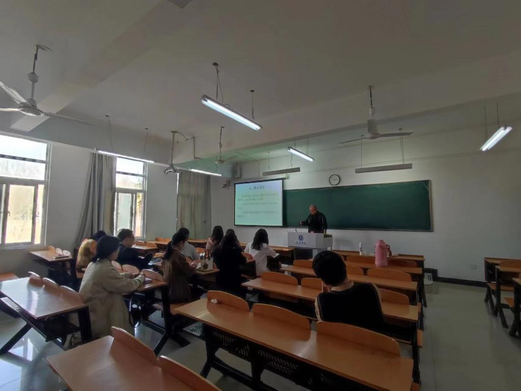 会议开始,梁修振老师主持并进行发言,强调了论文指导工作的重要意义。然后,邱德乐教授结合自身的毕业论文审题体会,从总体状况、存在问题、修改策略和陈述方法四个方面进行论文指导工作的经验分享。邱教授的准备非常充分,结合PPT进行耐心细致地讲解,内容深入浅出,讲授论证结合、切中要害,为教师们的毕业论文指导工作提供了很大启示。会议最后,梁修振老师进行活动总结,要求各位教师结合指导意见认真审查自己组内论文题目存在的问题,并及时进行修改完善。