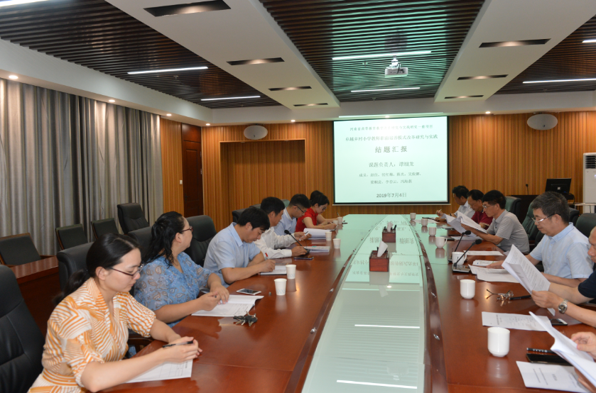 7月4日下午,河南省高等教育教学改革与实践项目结题评审会在学校综合楼1410会议室隆重举行。七位受邀专家对我院谭细龙教授主持的2017年度河南省高等教育教学改革与实践项目“卓越乡村小学教师职前培养模式改革研究与实践”进行结题评审。评审会议开始前,信阳学院副校长王强教授首先介绍了与会专家,并代表学校对七位专家的辛苦工作表示感谢,恳请各位专家多提宝贵意见,并语重心长地叮嘱项目组要根据专家们的诊断和把脉对该研究进行再完善,希望项目组能够再接再厉利用这个项目“走出去”,王强副校长最后对我校未来的教育教学改革研究提出了展望。