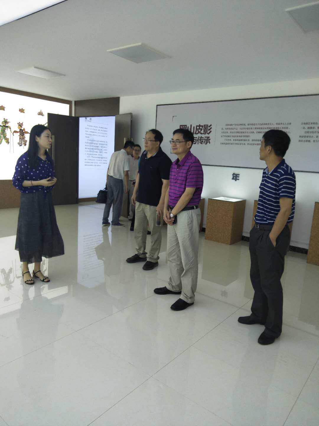 座谈会结束,湖北大学教育学院领导一行参观了教育学院相关实验室和我校非物质文化遗产传承基地,并合影留念。