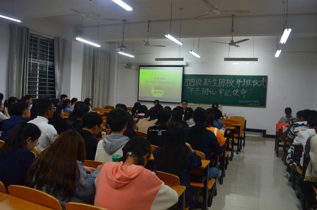 10月30日下午,教育学院2019级新生团校开班仪式在社科楼216教室举行。参加本次开班仪式的有党总支书记李赟、学工秘书刘颖方、团总支书记郝昊、教育学院团总支学生会部分成员及2019级各团支部委员。开班仪式由团总支书记郝昊主持。