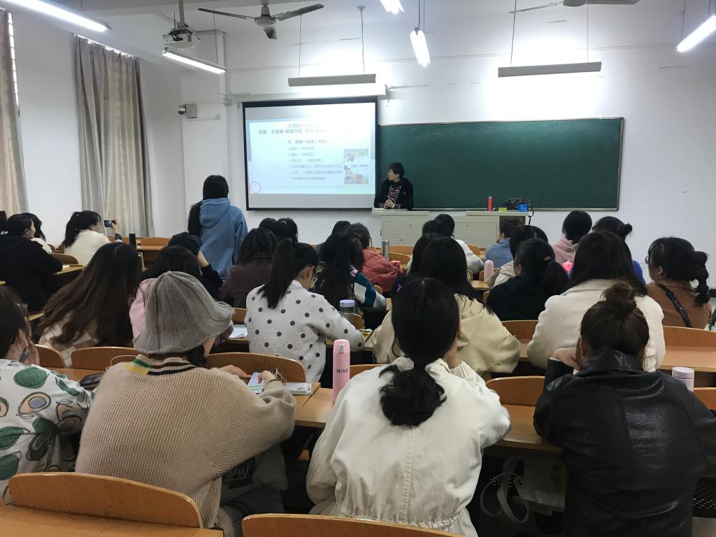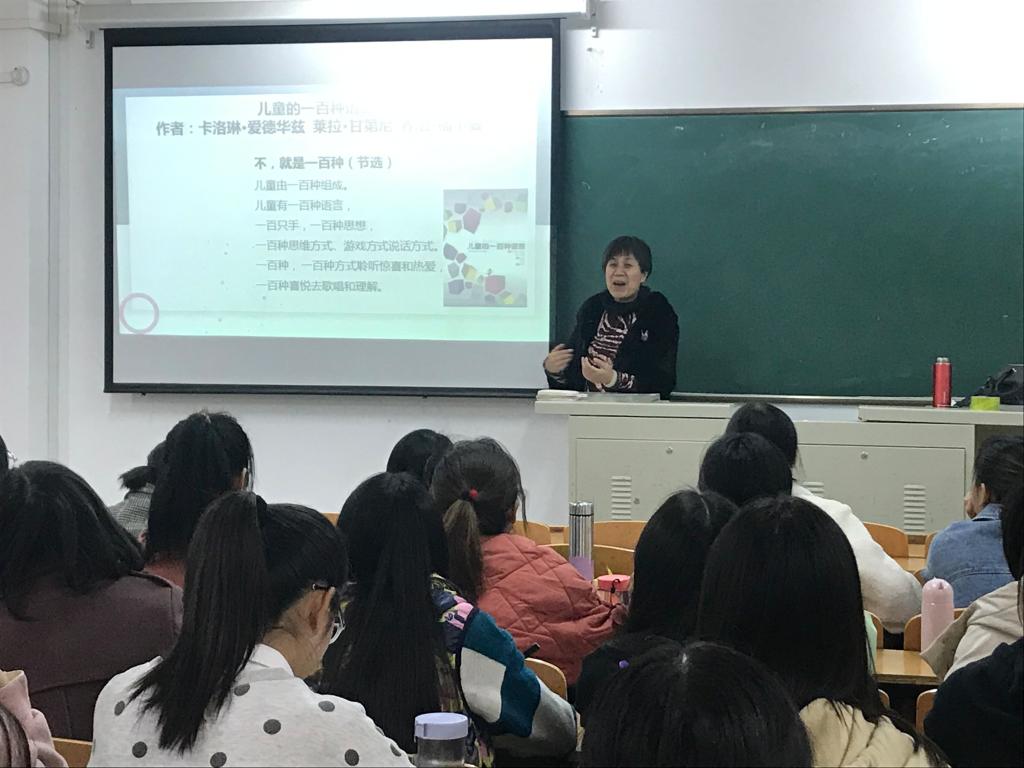 11月22日、23日,学前教育专家、洛阳师范学院学前教育学院副院长来我校与学前教育专业青年教师进行学术交流,并为2017级学前教育专业本科生作了题为《瑞吉欧教育方案》的学术报告。