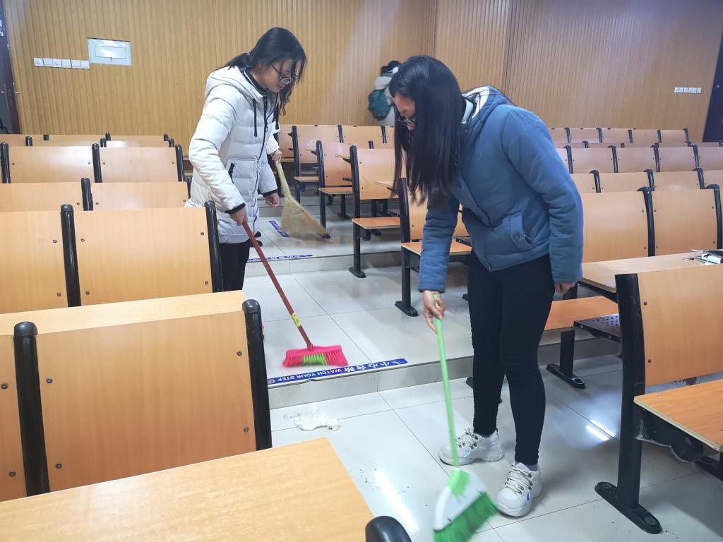 本次活动以六个人为一组,打扫小教室;以十一个人为一组,打扫大教室。同学们对打扫教室卫生进行了明确的分工,并很快进入工作状态,她们一丝不苟的扫地,细小的头发丝也没有留下。拖地的同学也是不敢怠慢,认真完成自己的工作。打扫过后的教室一尘不染,为同学们的学习和老师们的工作提供了一个干净整洁的环境。擦黑板的同学更是认真负责,使黑板焕然一新。