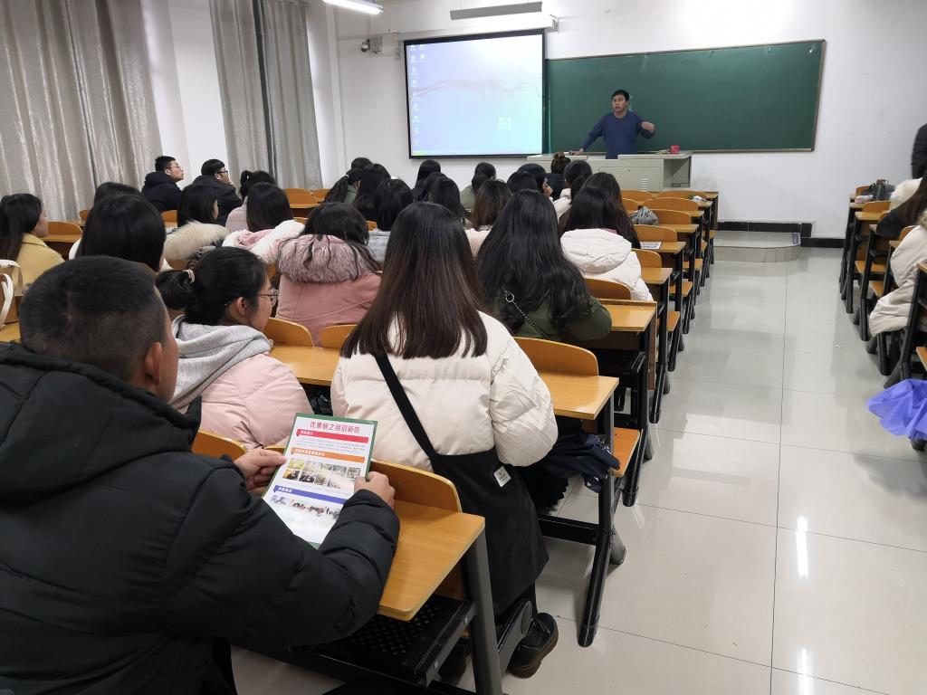 12月16日下午,郑州培杰儿童学习能力中心和郑州中原区畅之铭教育培训学校招聘宣讲会在社科楼216举行,部分2016级毕业生代表参加了本次招聘宣讲会。