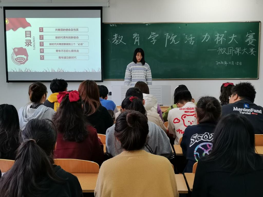 2020年11月15日,信阳学院教育学院于社科楼207举办“教育学院活力杯大赛”。参加本次活动的是2020级学生代表,教育学院主席团及学生会代表。