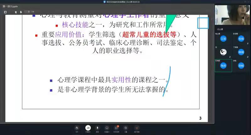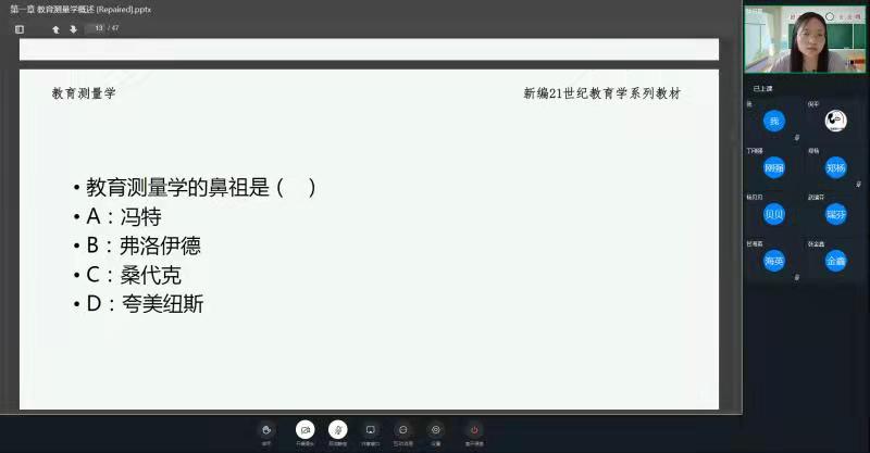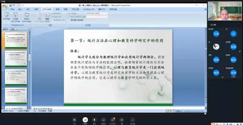 8月31日下午,心理学教研室举行了在线教学技能提升教研活动,主要针对入职不到一年的新进教师和没有网课经验的老教师进行。活动包括三部分:1.在线考勤。2.课件呈现并讲解,讲第一次课的内容。3.运用软件进行互动提问。每人演练二十分钟左右。本次主要运用钉钉和腾讯会议两个平台。在操作过程中发现问题,并及时解决问题。比如屏幕共享问题,视频连麦问题,在线录课问题,练习题发布的问题等。使老师熟悉了在线网络课程平台,同时也知道了在线上课的基本步骤和教学特点,为即将到来的在线教学做好了准备。