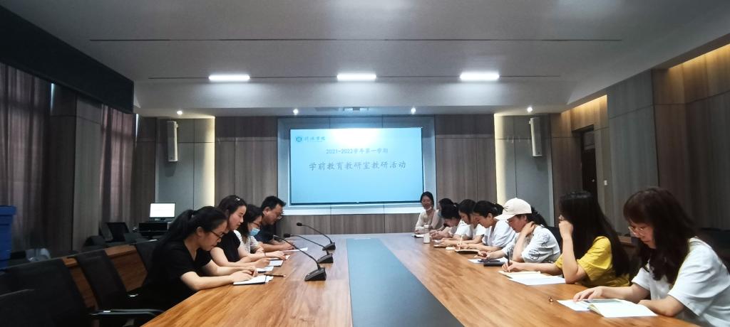 9月17日,教育学院学前教育专业全体教师在社科楼109召开了新学期第一次教学工作分配及材料检查会议,学前教育教研室全体教师参加了会议。