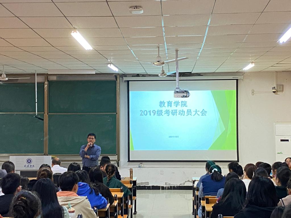 为了调动大三学子的考研积极性,让同学们更好的挖掘自身潜能,把握深造机会。10月12日下午,教育学院在社科楼112教室召开了考研动员大会,各教研室主任、青年教师代表、2019级有考研意向的同学参加了大会。教育学院名誉院长出席大会并为学生做了指导,大会由学工干事郝昊主持。