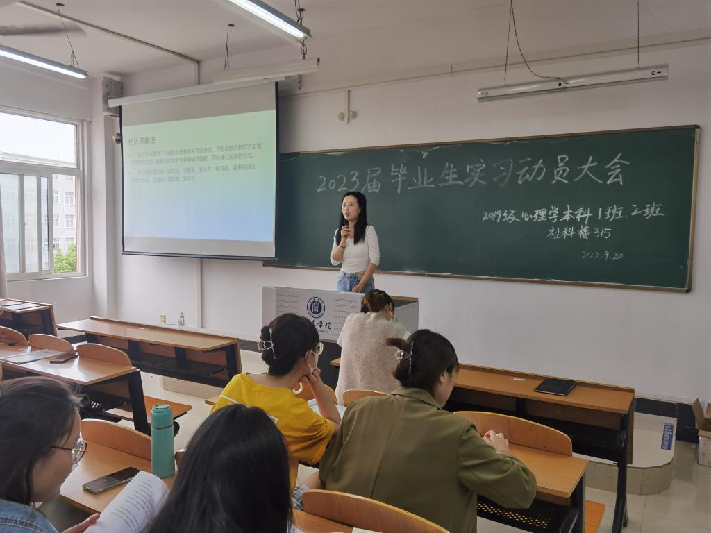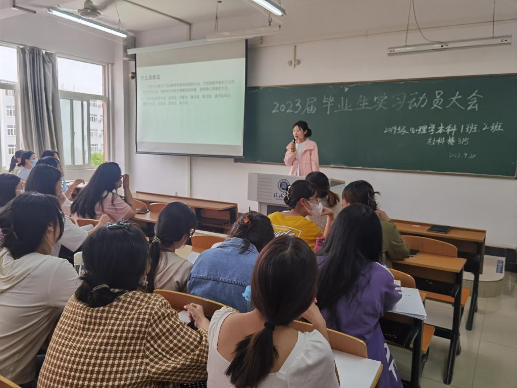 9月20日,心理学专业召开了实习动员大会,会议由杨立昊主持,2019级心理学专业全体学生、辅导员陈慧和姜红老师、校内实习指导老师和校外实习带队老师参加了此次会议。