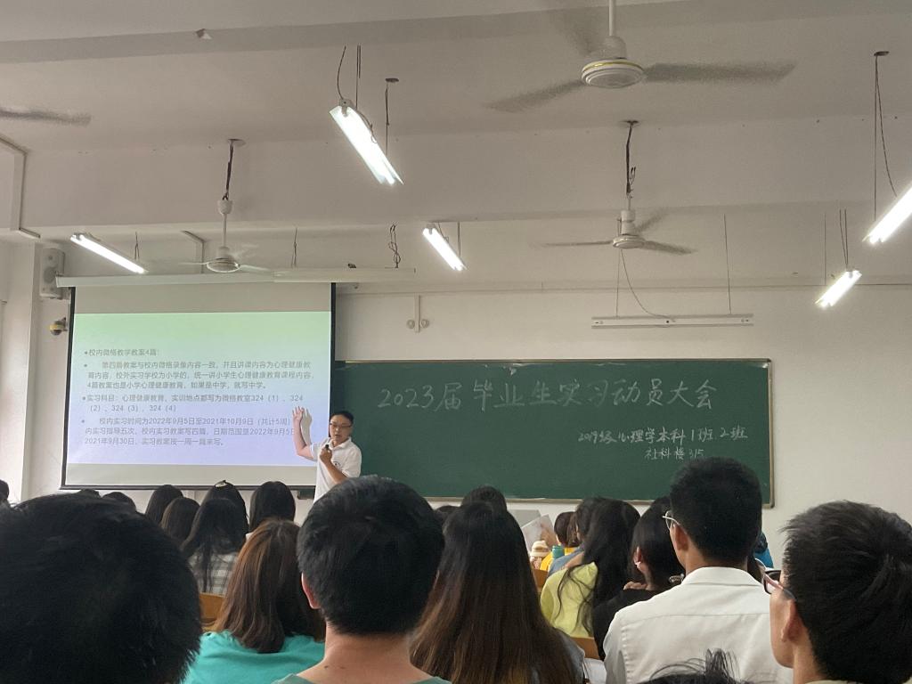 动员会首先由杨立昊介绍了教育实习在专业培养中的重要性和必要性,同时讲解了实习过程中的校内微格和校外实习的教案设计、听课记录、班主任工作、学生情况走访报告、教育实习工作总结等内容的注意事项,指出了容易出错的地方。