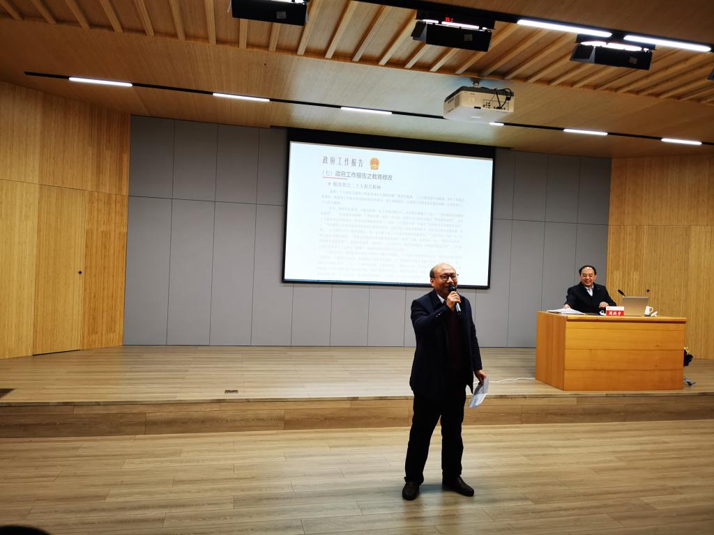 名誉院长在主持时指出,周教授的报告,理论联系实际,深入浅出,现场互动有序,气氛活跃,以理论的高度回答了教师在实践中遇到的问题,对我院师生深入学习和贯彻落实“两会”精神具有重要的指导意义。