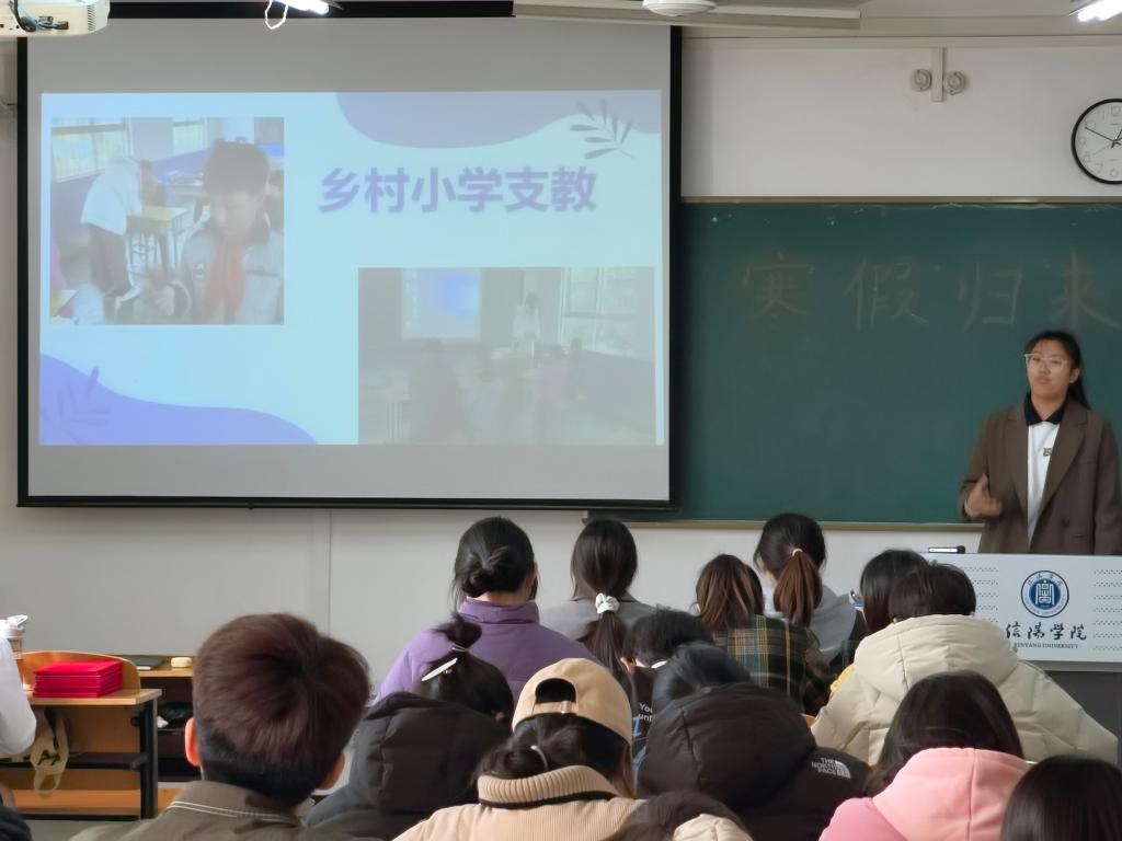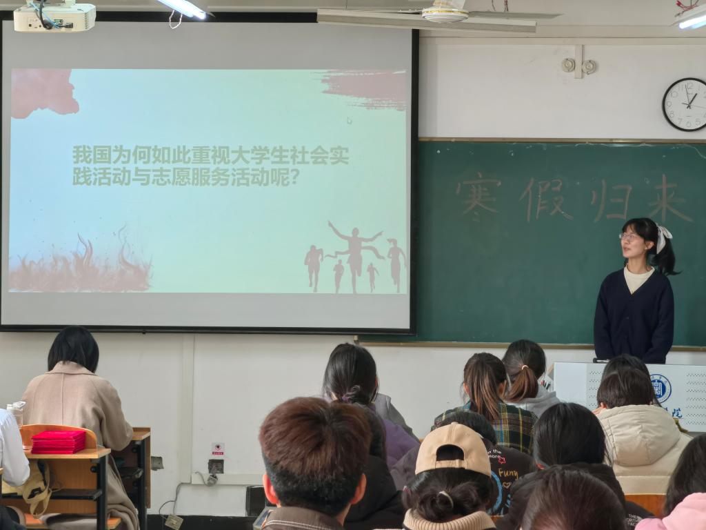 为增强学生志愿服务精神,提高学生综合素质,信阳学院教育学院在寒假“返家乡”社会实践活动的基础上,于3月24日在社科楼316组织开展了“寒假归来话实践”活动。