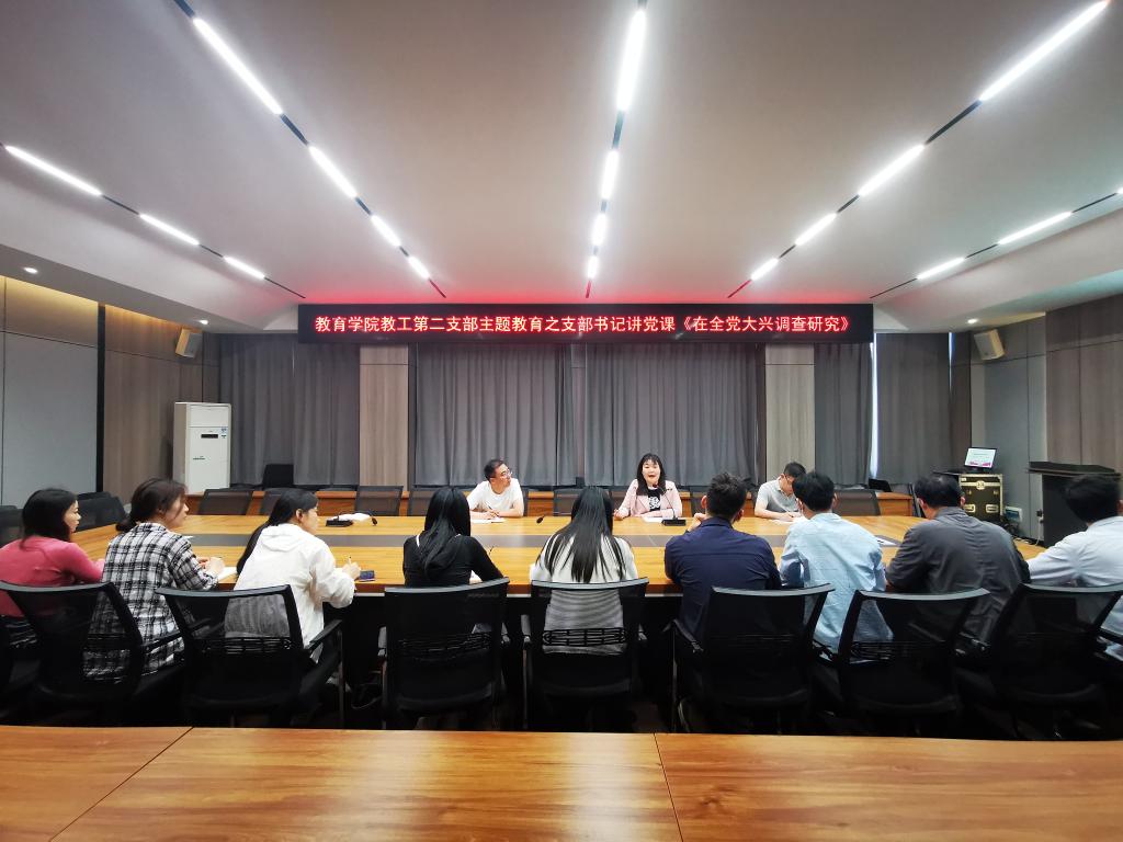 5月23日下午,教育学院教工第二党支部在109会议室举行了主题教育集中学习研讨会。全体支部成员参加了此次集中学习,学习研讨会由支部书记段海丹同志主持。