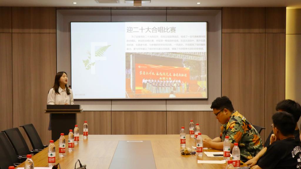 2023年6月14日,教育学院团总支在社科楼109会议室举行第六届学生会主席团竞聘大会。教育学院学工干事郝昊、团总支书林子瑞出席了此次竞聘大会,会议由林子瑞主持。