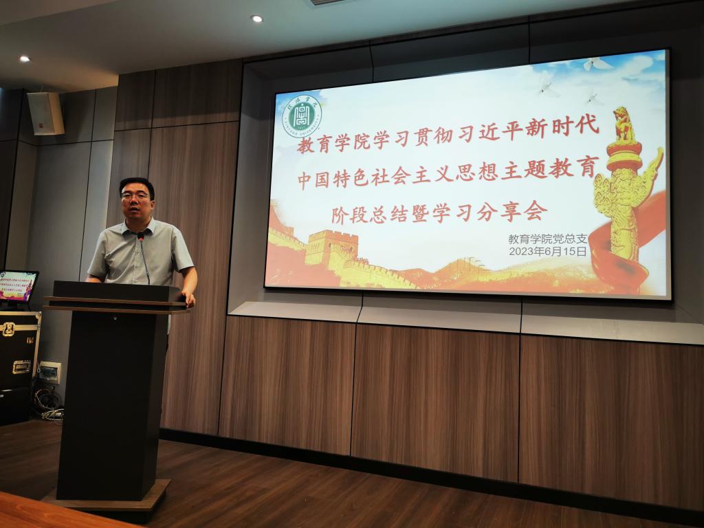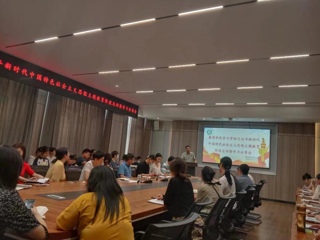 为进一步学习贯彻习近平新时代中国特色社会主义思想主题教育,使全体党员同志学深悟透、学以致用,6月15日下午,教育学院党总支对4-6月主题教育活动进行阶段总结并举行了学习心得分享会。学院党总支书记张甲楠、各党支部书记、全体师生党员参会,学习心得分享活动由林子瑞老师主持。