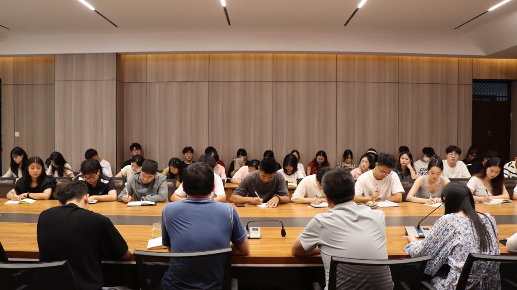 会议伊始,党总支书记张甲楠首先明确新学期具体工作安排,强调学生会各部门新学期的准备工作,并多次强调学生干部要理清自己的职责,用心对待自己的工作,提高工作效率。团总支书记林子瑞提出对新一届学生会干部的要求,重点强调责任、严谨、服务、主动四个意识,并指出上届学生会存在的问题,希望新一届学生会干部认真对待。同时,对学院近期工作进行详细安排,包括新生团关系转接、九一八团日活动和假期实践活动总结等。