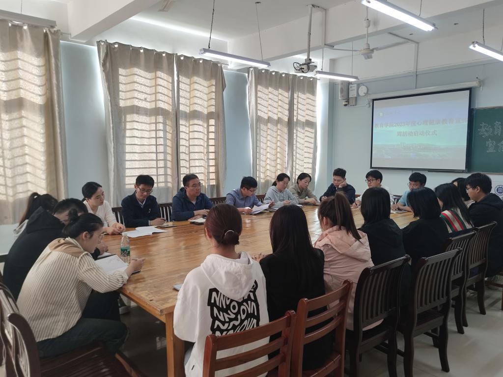 党总支书记张甲楠宣读《教育学院2023年度心理健康教育宣传周活动实施方案》并对心理健康教育宣传周活动进行总体部署与安排。他强调全院师生要高度重视,做到时间保证、内容落实、分工明确,确保心理健康教育宣传周活动顺利进行并能收到实效。