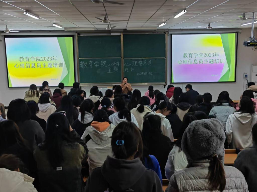 为进一步普及心理健康知识,培养新一届心理信息员的心理健康意识和工作能力,引导学生保持积极向上的人生态度,预防心理危机事件的发生。我院于2023年11月23日19:00在社科楼219教室开展了2023级心理信息员主题培训活动。本次培训由我院二级心理辅导站站长王晶主讲。