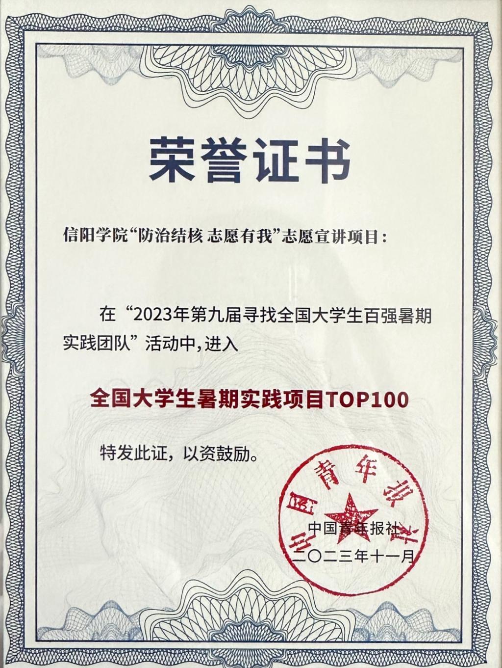 近日,中国青年报公布了“2023年第九届全国大学生暑期实践展示活动”优秀学校团队名单,教育学院“防治结核,志愿有我”暑期社会实践团队,获评全国大学生暑期实践百强项目。并于11月20日至23日,在中国人民警察大学开展了成果展示、交流及颁奖活动,教育学院团总支负责人及该团队负责人参加了颁奖典礼。