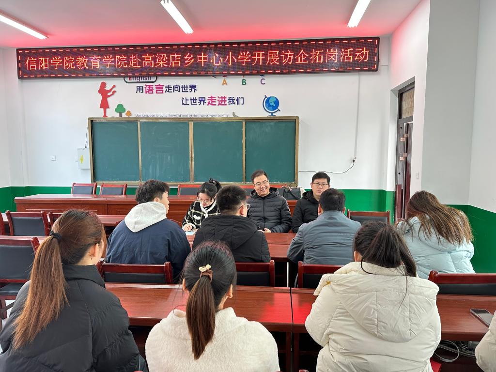 为深入落实高校毕业生就业工作,12月12日,教育学院党总支书记张甲楠、学工负责人郝昊一行赴平桥区高粱店乡中心小学开展访企拓岗活动。平桥区高粱店乡中心小学校长戚玉国接待了张甲楠一行。