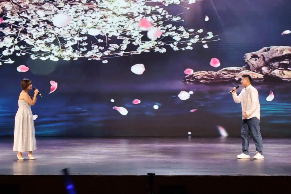 晚会在喜庆欢快的开场舞《新年快乐》中拉开帷幕。伴随着跳动的音符,张孟玥同学的歌曲《it's so easy》演绎着青春的活力;小品《相亲》让观众在啼笑皆非中感受到当代青年大学生恋爱观的重要性;原毅仁老师演唱的歌曲《一次就好》让观众看到青年老师不但能够激扬讲台,也可以闪耀舞台;街舞《Showcase》燃爆全场;何其有幸,春风送暖,雨露无言,山河万里不如身边有你,崔诗婕、宋骏超带来的歌曲《三生三幸》让观众体会到师生之情的珍贵与美好;师生同台展风采,又暖又燃放光彩,教育学院青年教师和文仪部同学共同带来的《时装T台秀》将晚会气氛推向了高潮;周巾翔同学带来的歌曲《牧马城市》将青春的奋斗和锐气诠释的淋漓尽致;赵天夏老师的一首钢琴曲《百鸟朝凤》让观众沉醉于栩栩如生的百鸟和鸣之声;冯诗雅带来的歌曲《一笑倾城》洋溢着青春和活力;小品《非常访谈》让现场观众沉浸在无尽的欢乐中;百年筚路蓝缕,百年接续奋斗,杨欣雨带来的歌曲《如愿》让现场观众深受感动,更加深刻的体会到今日中国所取得的成绩是多么的来之不易,应倍加珍惜;一舞天地间,骁气中国魂,舞蹈《红昭》让人体会到红衣扇子的英姿飒爽;梦想看似远在天边,实则近在眼前,蜗牛虽小,梦想很大,只要坚持不懈、不放弃,梦想终将实现。晚会在翟海燕老师作词作曲的原创合唱歌曲《蜗牛的梦想》中落下帷幕。